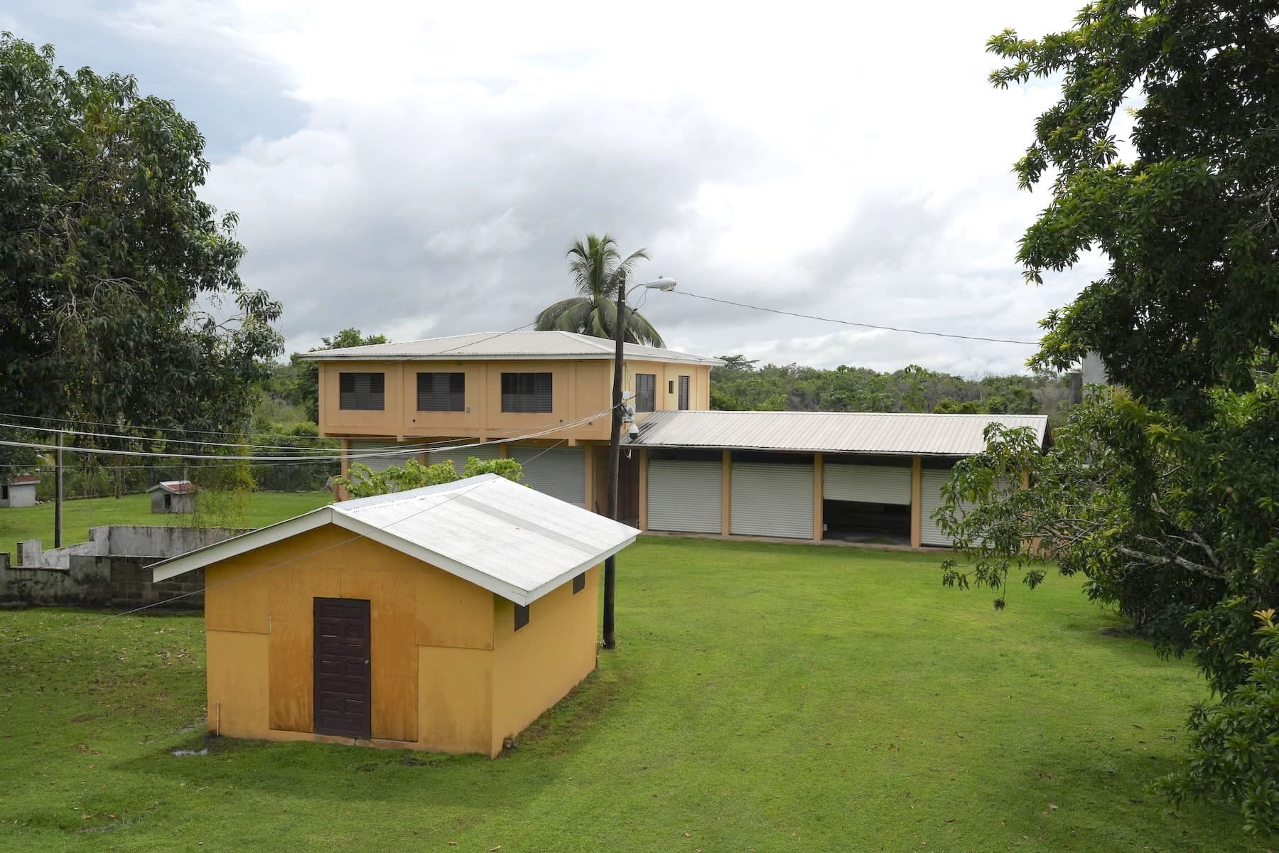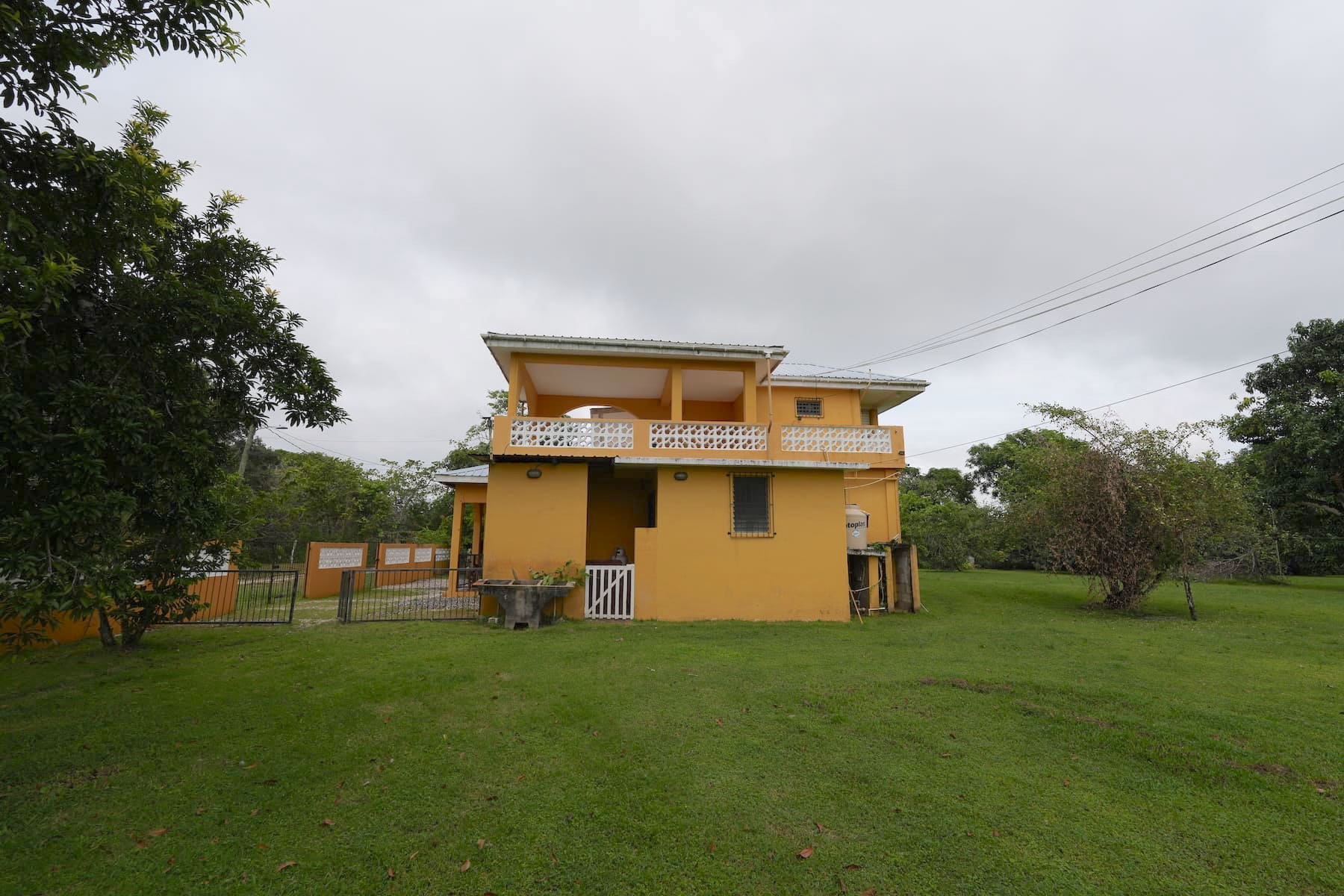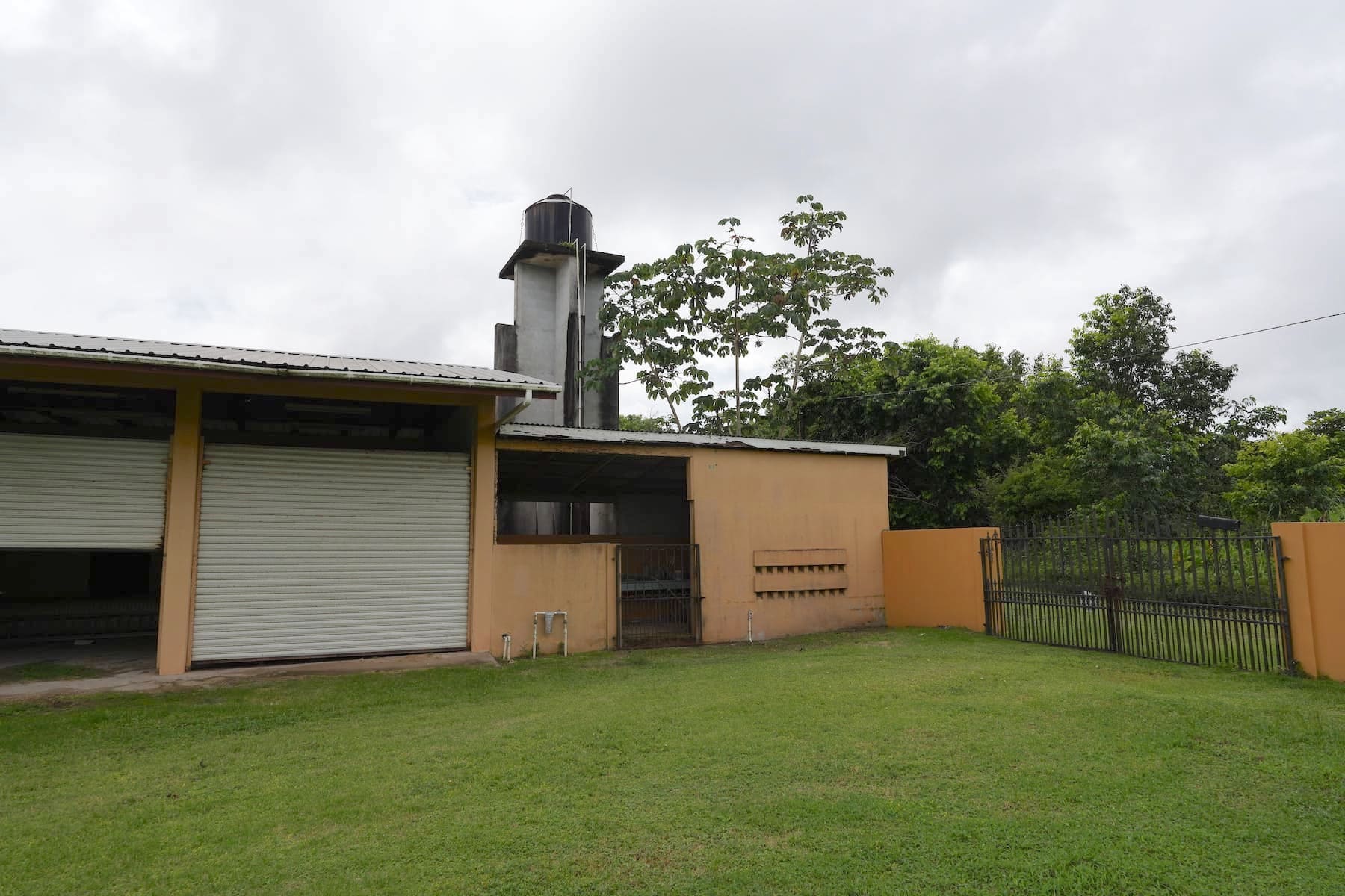 The property contains two concrete structures and a water tower. The two-story home features fully tiled floors with a spacious living area, dining, and kitchen. The kitchen boasts a beautiful mahogany base and overhead cabinets with lots of storage space. There are three bedrooms and one bathroom on the first floor. The indoor spiral staircase leads to the home’s master suite which gives access to a large wrap-around balcony overlooking the neighborhood.
