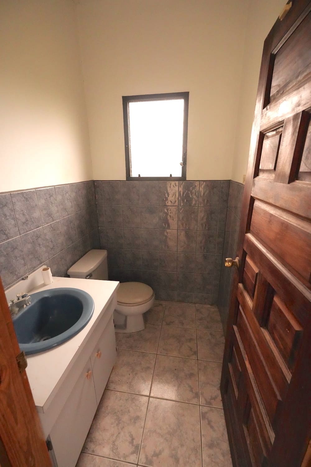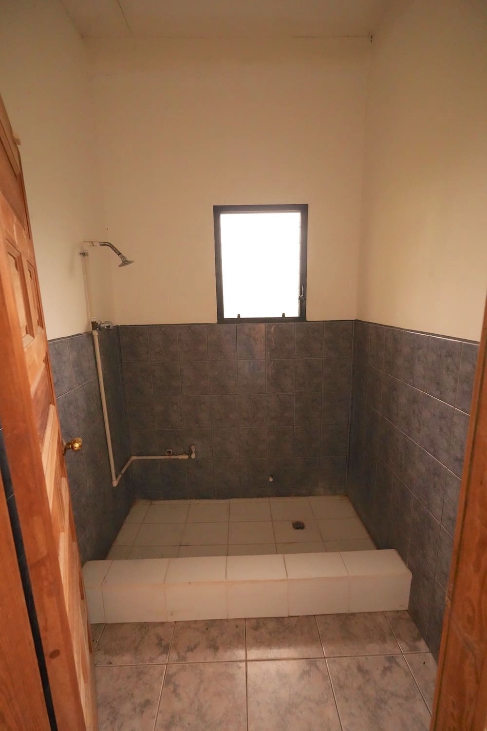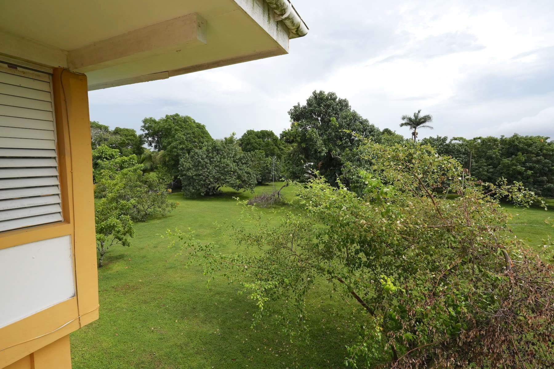 The property contains two concrete structures and a water tower. The two-story home features fully tiled floors with a spacious living area, dining, and kitchen. The kitchen boasts a beautiful mahogany base and overhead cabinets with lots of storage space. There are three bedrooms and one bathroom on the first floor. The indoor spiral staircase leads to the home’s master suite which gives access to a large wrap-around balcony overlooking the neighborhood.