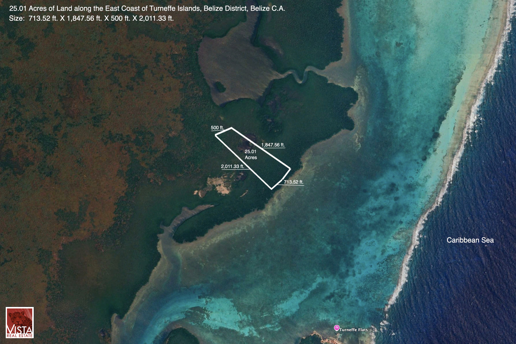 The Turneffe Atoll is located 20 miles from Belize City and is considered to be the largest coral atoll in Belize and in the Mesoamerican Barrier Reef System. The property is 25.01 acres of pristine undeveloped land and is located along the east coast of the Turneffe Islands and approximately 0.82 miles from Turneffe Flats Island Resort. The property measures approximately 1847.56 ft x approx. 700 ft x 2011.33 ft x 500 ft.