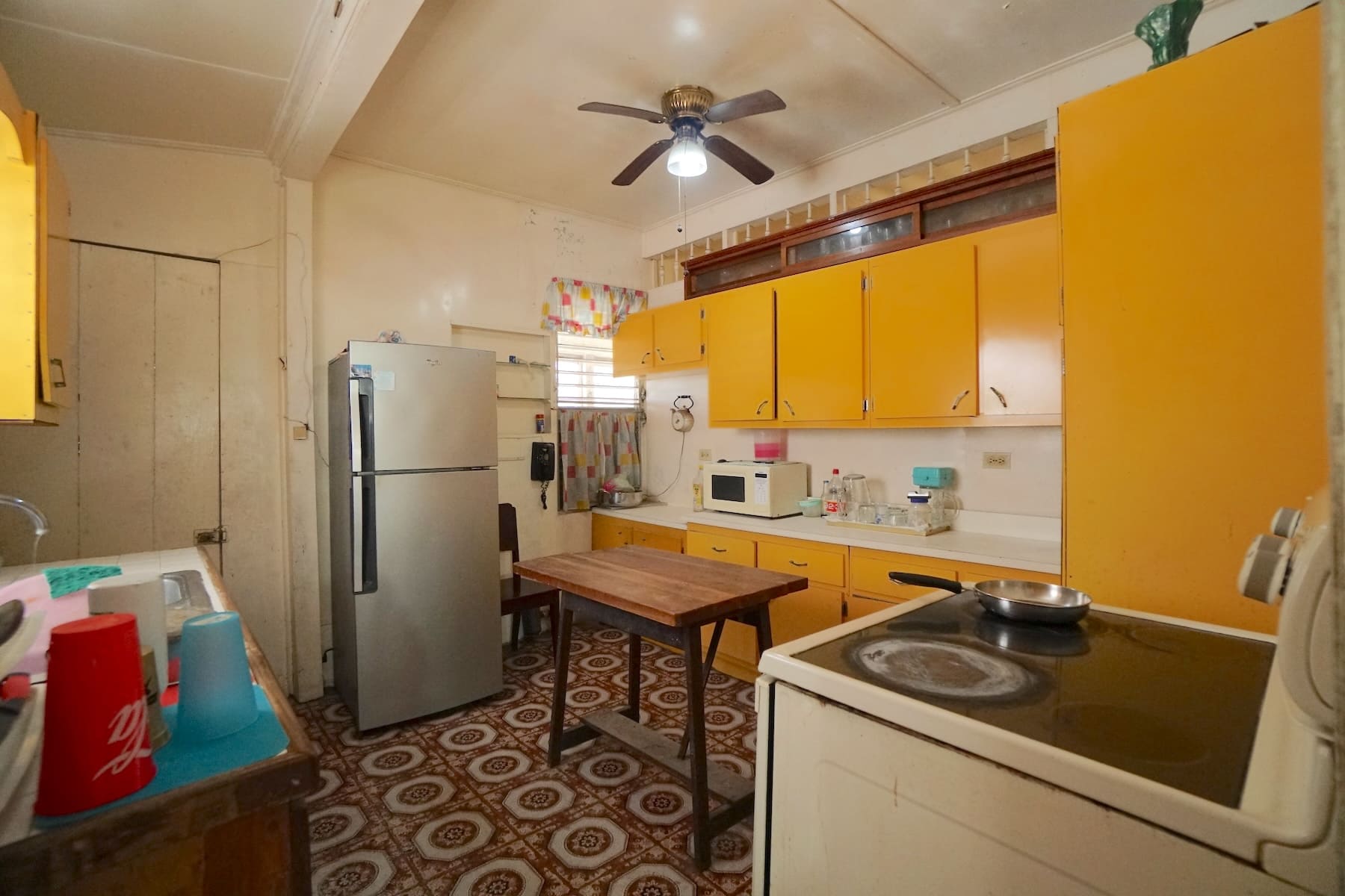 – Top Floor: Three bedrooms, one bathroom, and a kitchen. Features include natural hardwood floors, aluminum windows, colonial-style double doors and ceiling fans, preserving its timeless character.