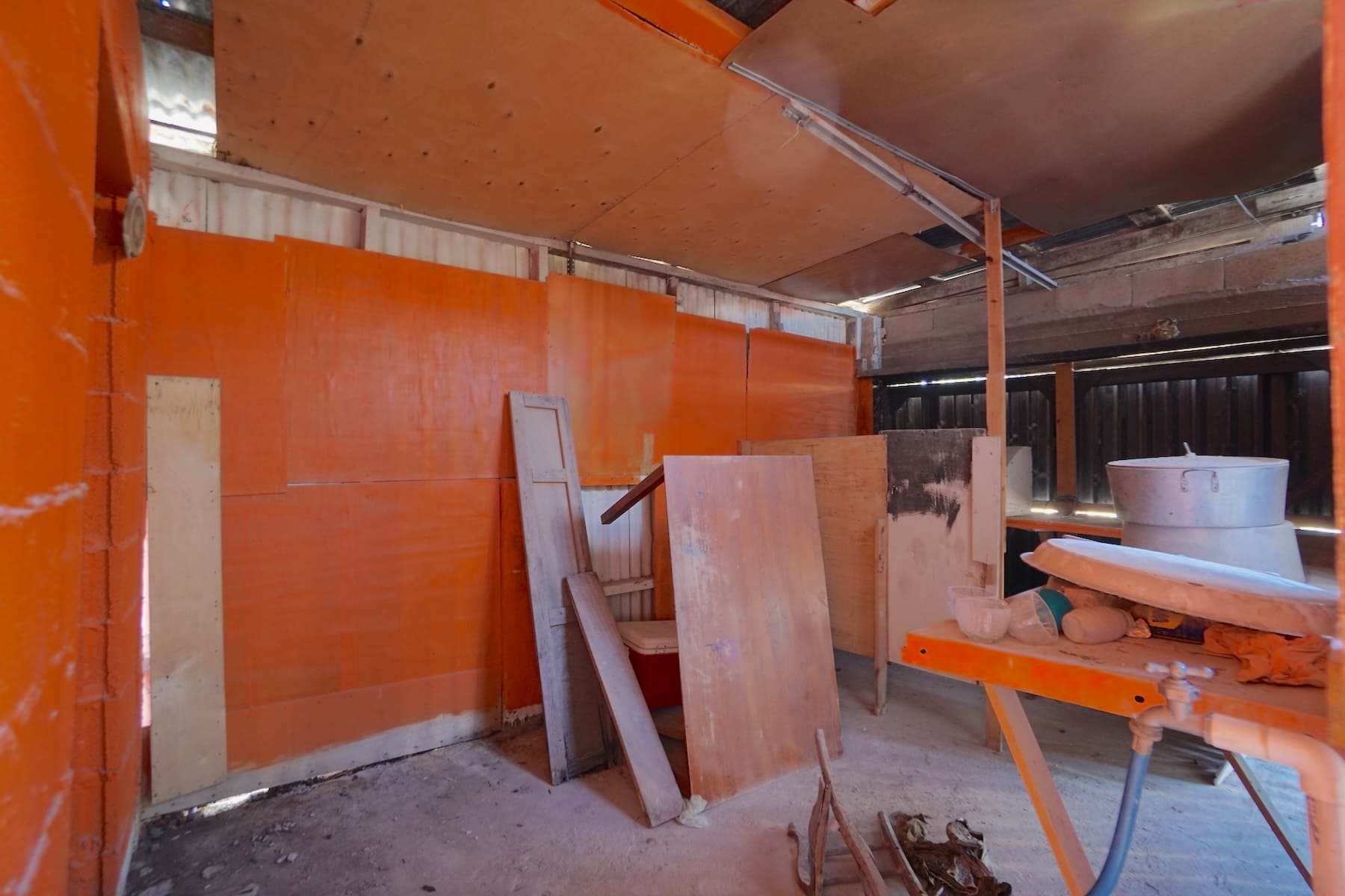 – Concrete water storage, an iron gate, and a concrete fence enclosing the property.