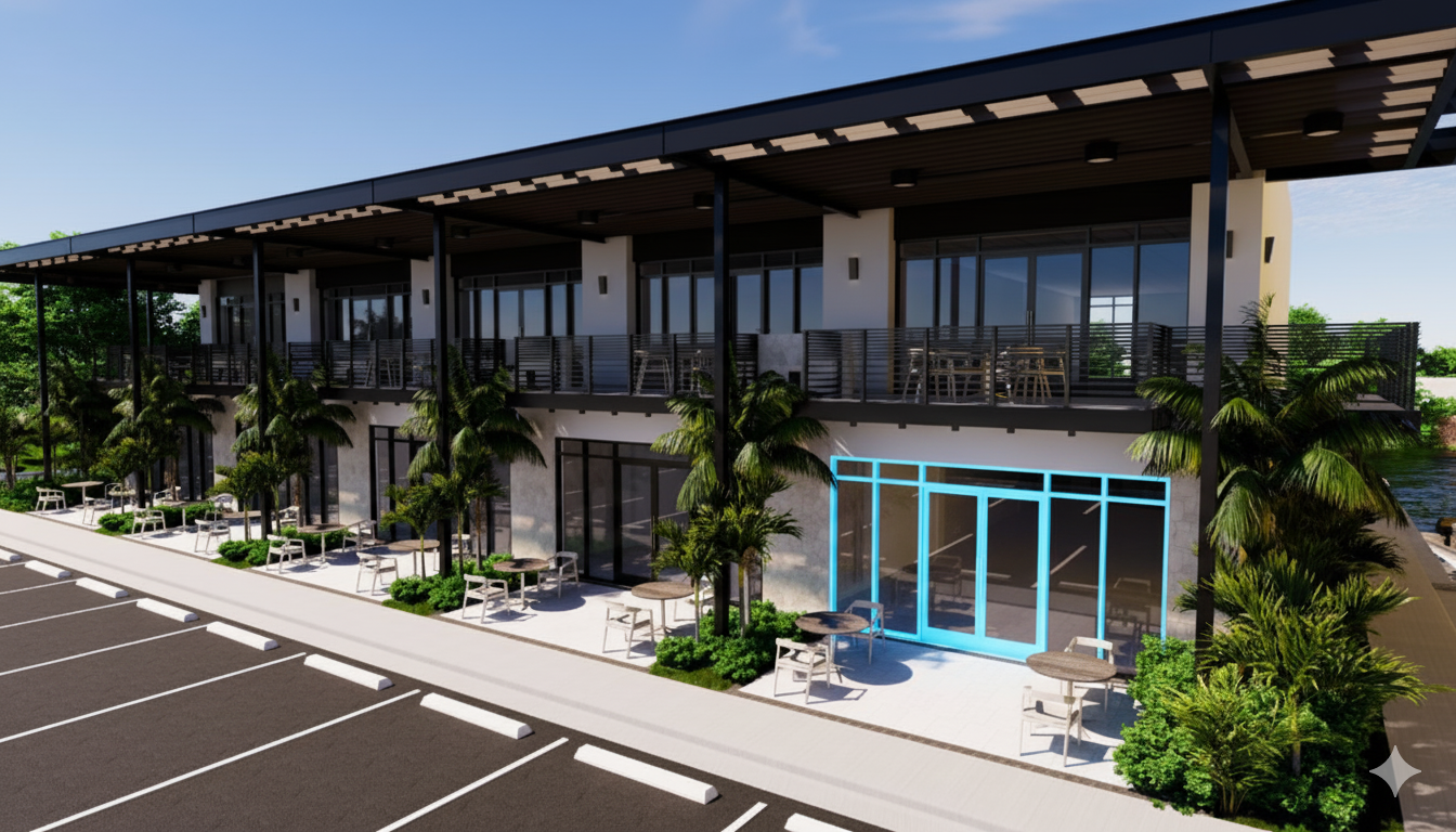 The space features sleek finishes and a functional layout ideal for professional tenants such as law firms, financial services, consultancies, or medical/administrative offices. For those seeking spaces for Retail and other services, the ground floor offers an outdoor terrace leading out to the parking lot. This office space boasts a serene river view and natural lighting at both ends. The unit includes a private restroom with the interior finished with painted concrete and a modern commercial blank slate for you to customize.