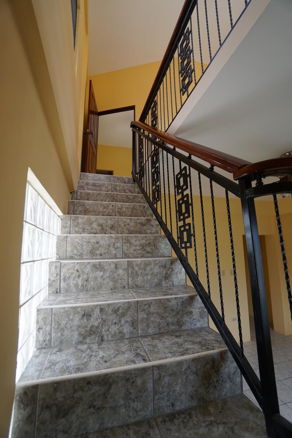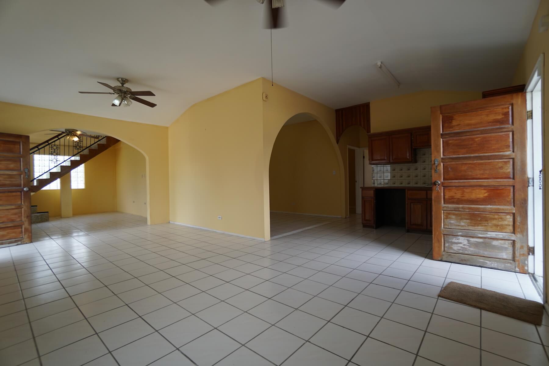 This spacious 3,000 sq. ft. home is positioned on the southwest corner of Los Lagos on a cul-de-sac. The residence sits on the front portion of the property with ample back yard space to customize and utilize. The first floor boasts a Living Room, Dining Room, Kitchen, Den, 2 Ensuite Bedrooms; 2 Bedrooms with shared Bathroom and an exterior storage Room. A tiled stairway with handrails leads to the second floor. The second floor boasts a large Master Bedroom Ensuite and a large open Lounge area overlooking the Living Room space below. Home feature L-shaped verandahs on both levels.