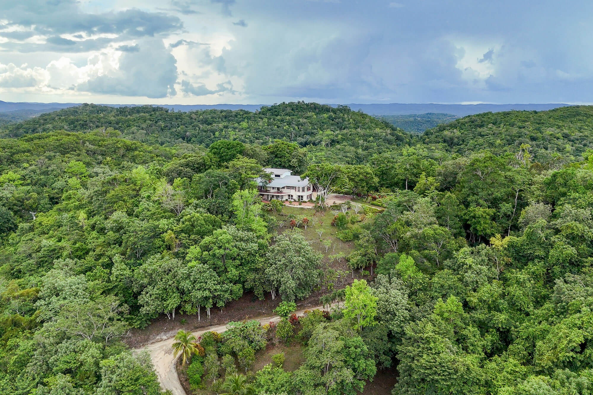 Perched high on a lush mountaintop in Western Belize, Kan-Iik Mountain offers an extraordinary 50-acre private estate featuring a 7,500+ square foot, fully furnished, three-story residence that combines architectural elegance, modern technology, and timeless craftsmanship. Just fifteen minutes from the vibrant twin towns of San Ignacio and Santa Elena, this property is a secluded retreat surrounded by pristine jungle and manicured gardens alive with exotic flowers, orchids, and fruit trees. Once past the remote-controlled gated entrance, a winding gravel road ascends to a hilltop where the ancient Maya once lived, culminating in a residence that pays homage to their legacy while embracing contemporary comfort.