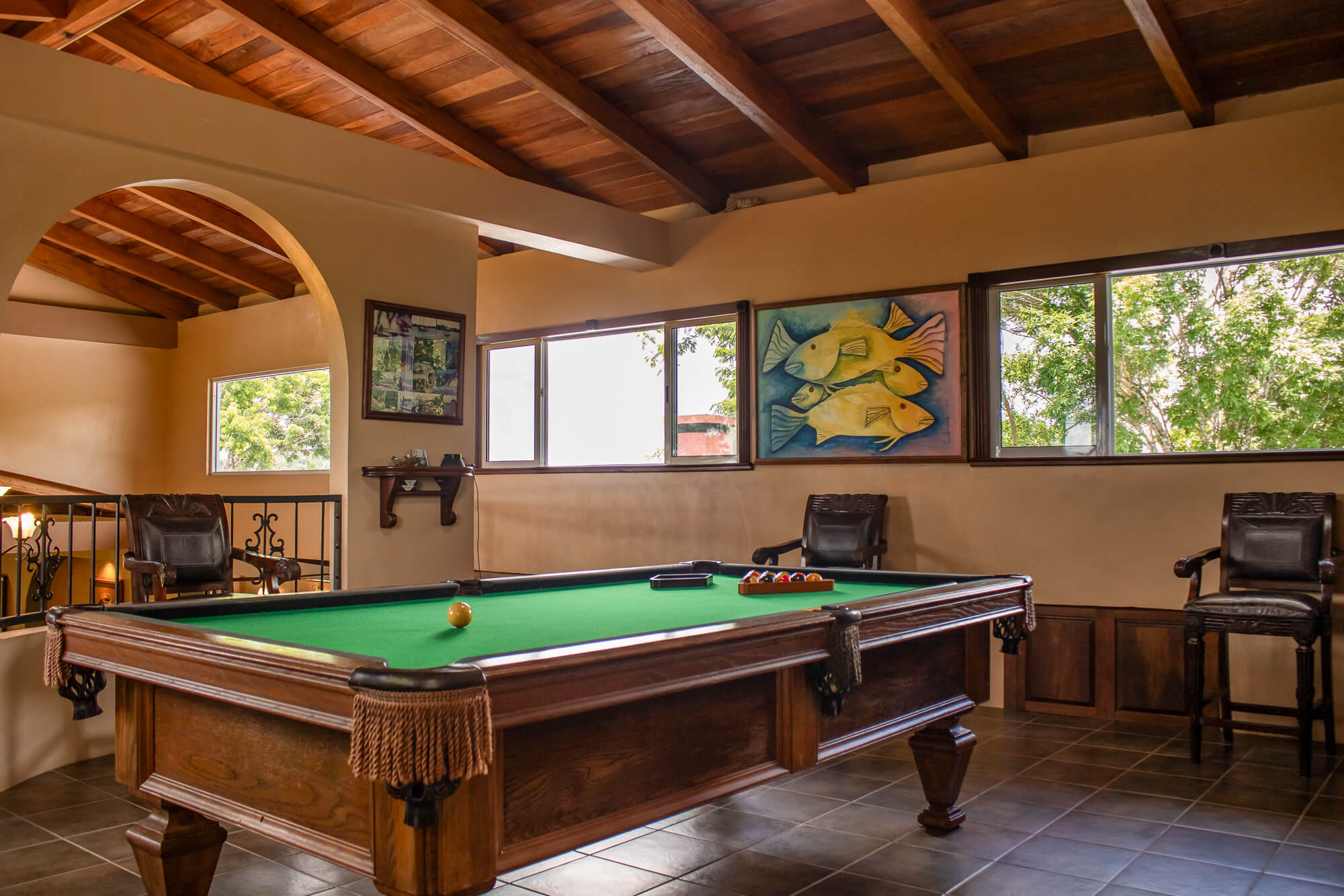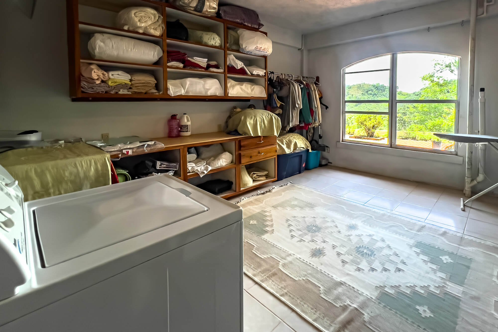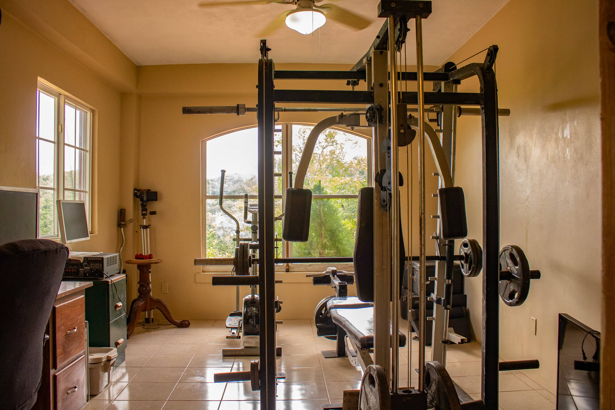 The estate’s third floor is a leisure haven, featuring a full-sized billiard table, entertainment area, and a balcony with some of the most commanding views on the property. Throughout the home, attention to detail is evident—vaulted hardwood ceilings, faux marble columns, handcrafted woodwork, and an intelligent integration of modern conveniences, including voice-controlled lighting and fans, whole-house surge protection, and high-speed internet with Ethernet and Wi-Fi coverage. Practical features abound, from a 12,000+ gallon rainwater catchment and reverse osmosis drinking system to an 11kW Generac propane generator with transfer switch.