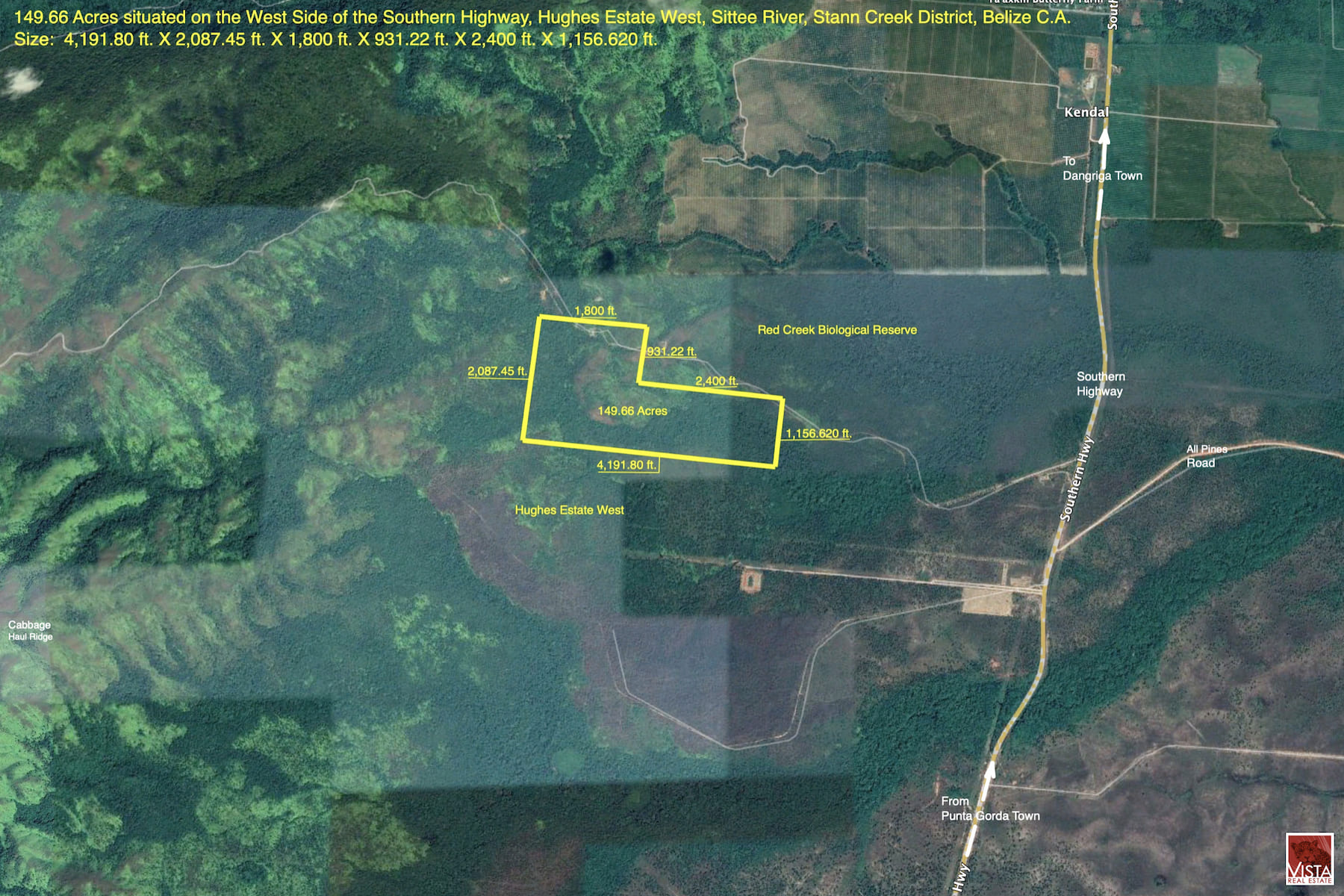 REDUCED! You’ll find this impressive 150-acre property located approx. 1.5 miles south of Maya Center Village and just 1 mi off the Southern Highway, Stann Creek District, in an area of Belize that sits just 10 miles from the beautiful beaches of Belize’s South Coast and boats stunning views of the majestic Maya Mountains on the Eastern edges of the Cockscomb Basin Wildlife Sanctuary. Its unique location offers proximity to both Hopkins Village and the Placencia Peninsula, two of Belize’s most popular tourist destinations as well as access to the very first protected area established for protection of the jaguar and now regarded as the premier site for jaguar preservation in the world.
