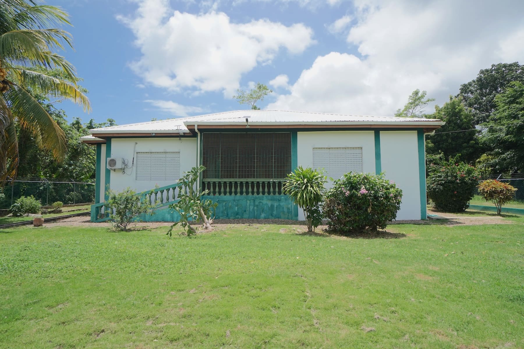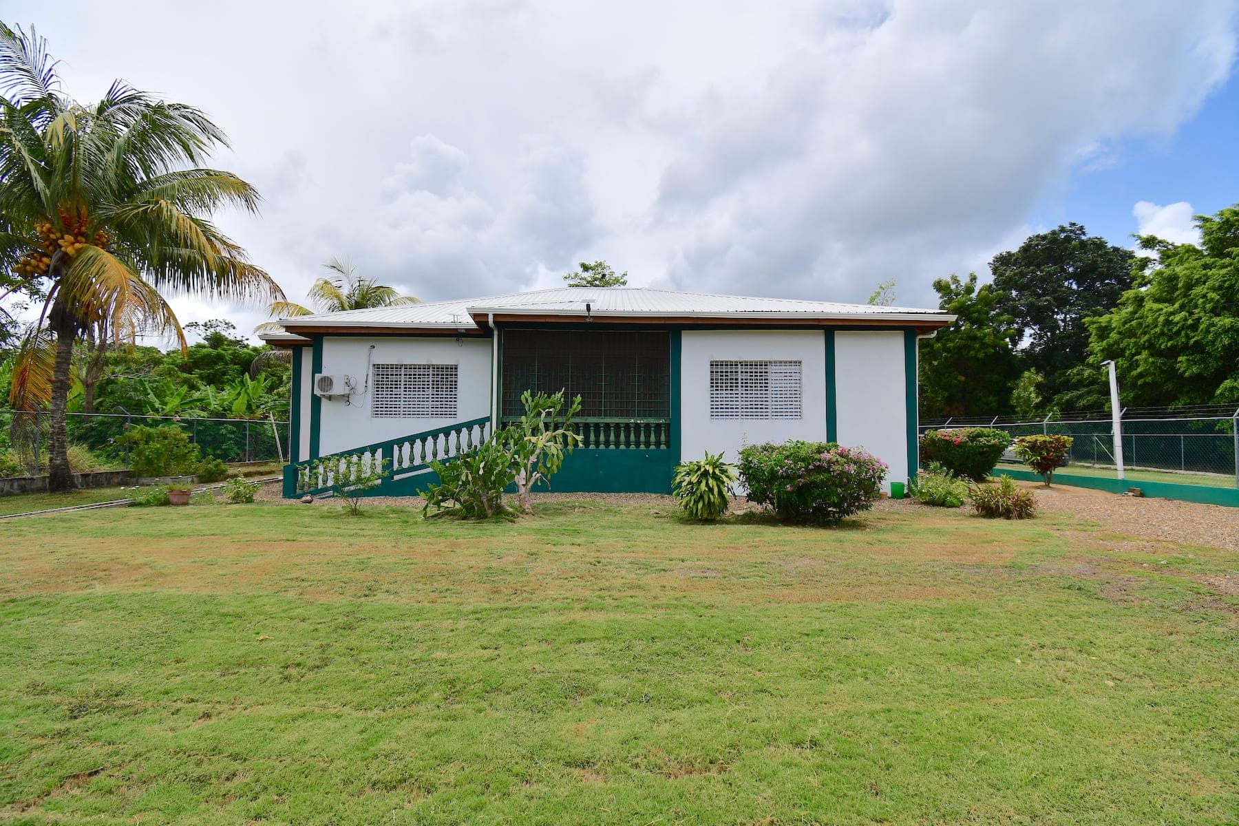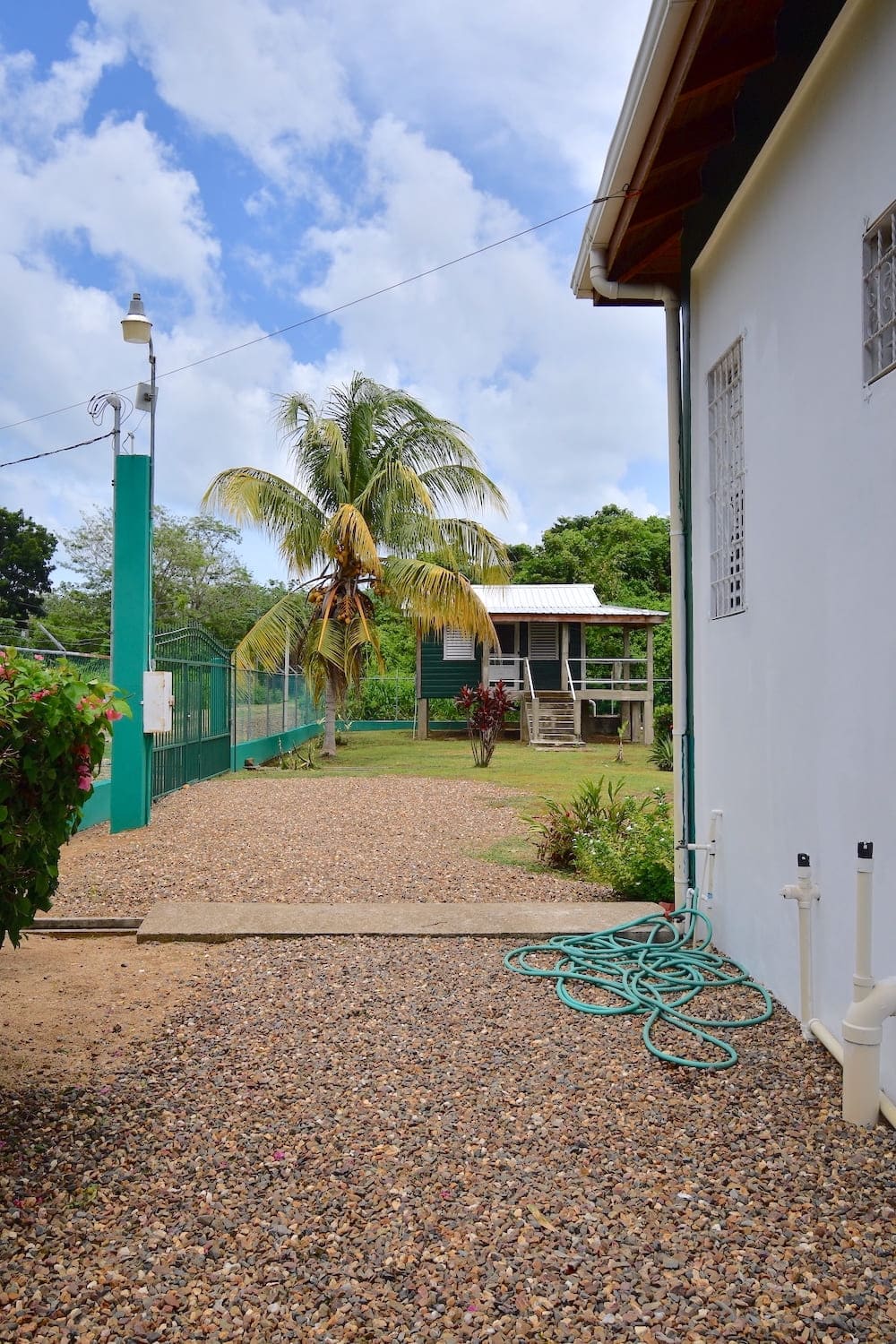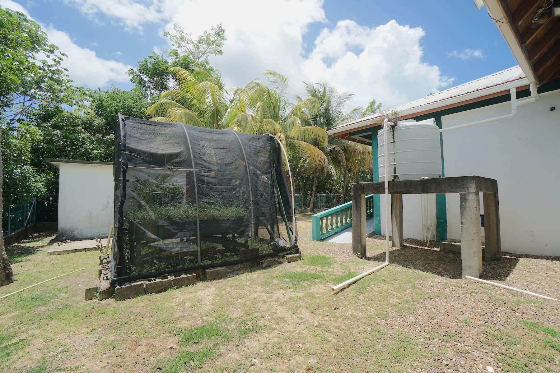 The property has great curb appeal with a design that fits well in its natural surroundings. The property is lush, green and rich with tropical birds – a Birdwatcher’s delight! It also has several fruit/herb/vegetable trees namely: Cashew, Custard Apple, Coconuts, Soursop, Banana, Plantain, Sugar Cane, Cassava, “Craboo.” Also included is a little green house with Ginger, Turmeric, Mint, Lemon Grass, Red-Hot Habaneros and Green Pepper plants. Culantro, Sage and Lemon Grass grow throughout the yard.