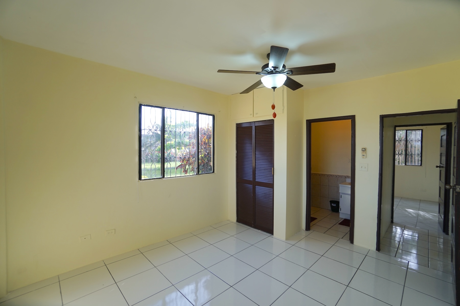 Upon entering, you are greeted with open Living and Dining Area, Kitchen with cabinets and a corridor that leads to the bedrooms and bathrooms. Home features an ensuite Bedroom on both floors. There is a Laundry Area on the Top Floor and a Storage Area on the Ground Floor. Additional features include Closet, Hardwood and Tiled Floors, Ceiling Fans, Air Conditioner, as well as Washer/Dryer outlets.