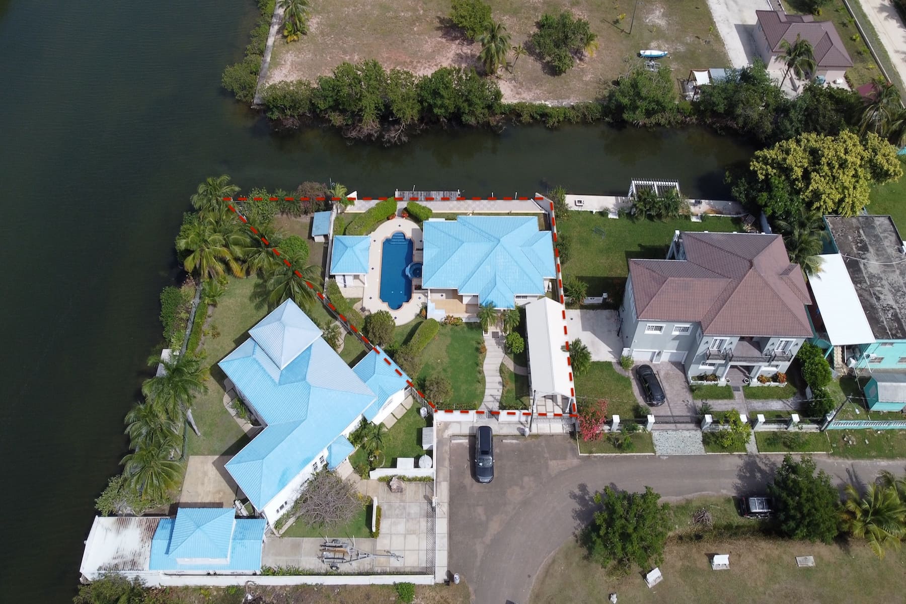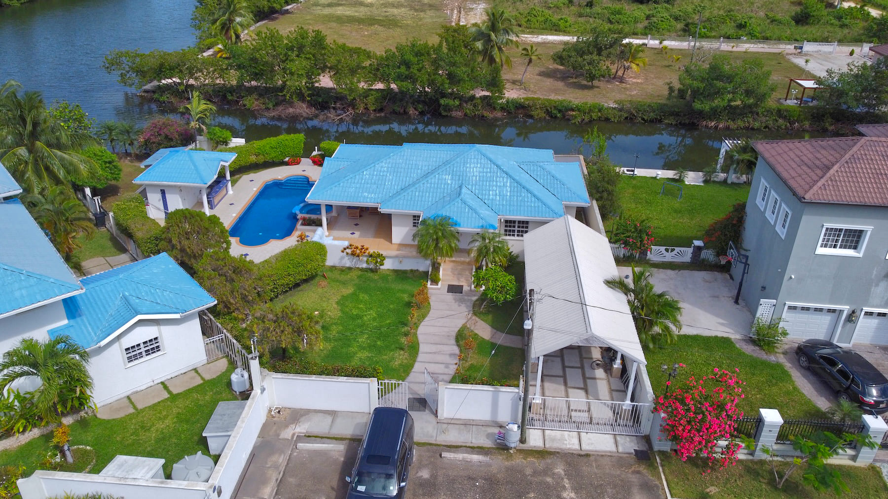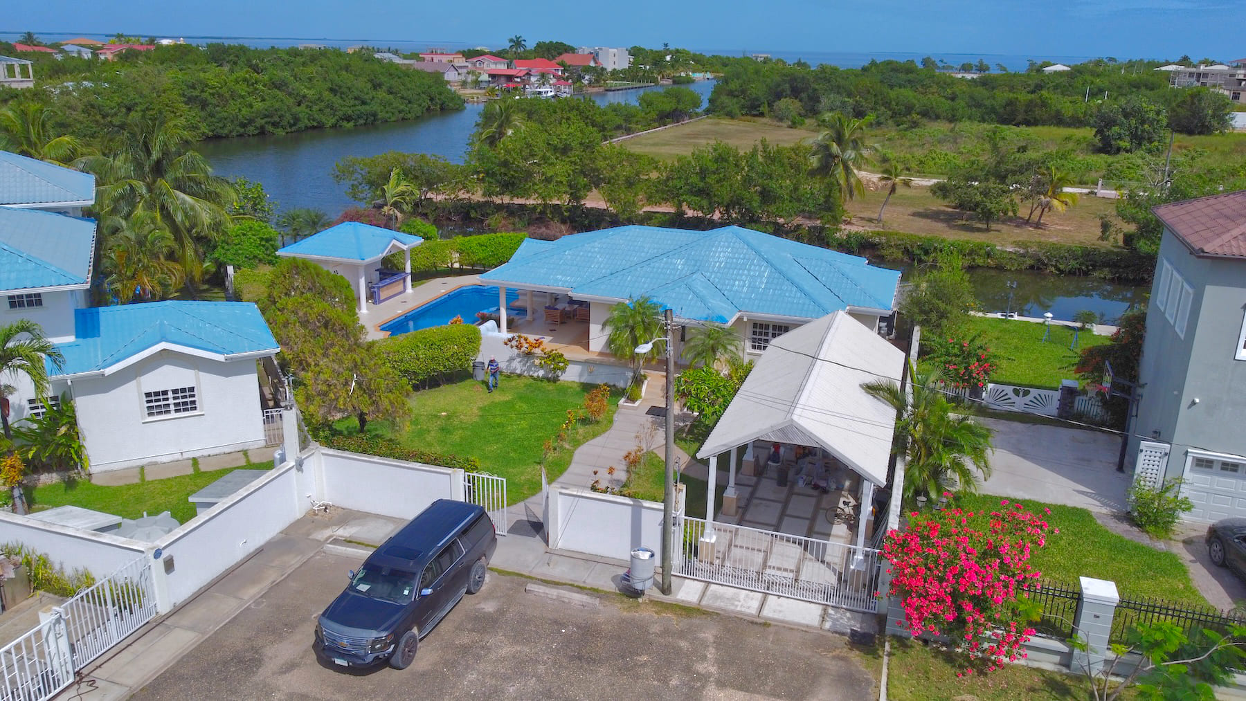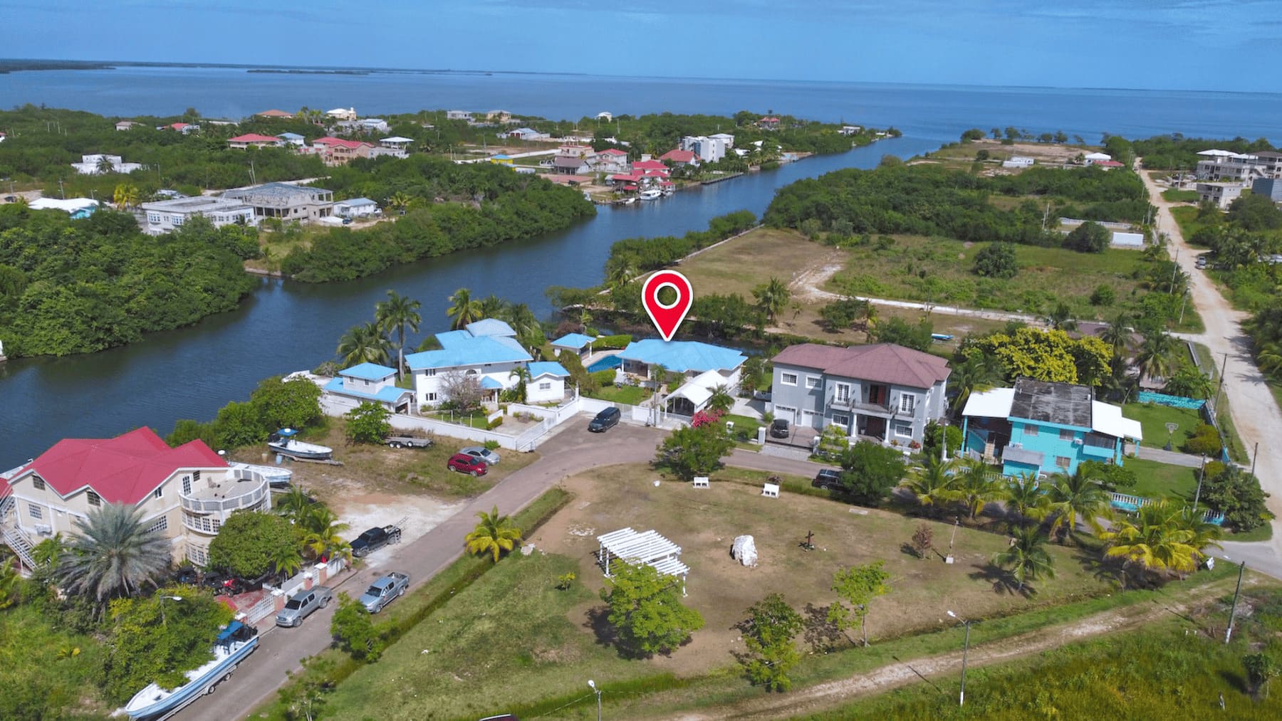 This impeccable, unfurnished 2-bedroom, 2.5-bathroom modern home features a private pool and stands as one of the finest properties in the Vista Del Mar waterfront community of Ladyville, Belize. Situated on a 0.23-acre canal-front parcel, it perfectly blends comfort, convenience, and accessibility.