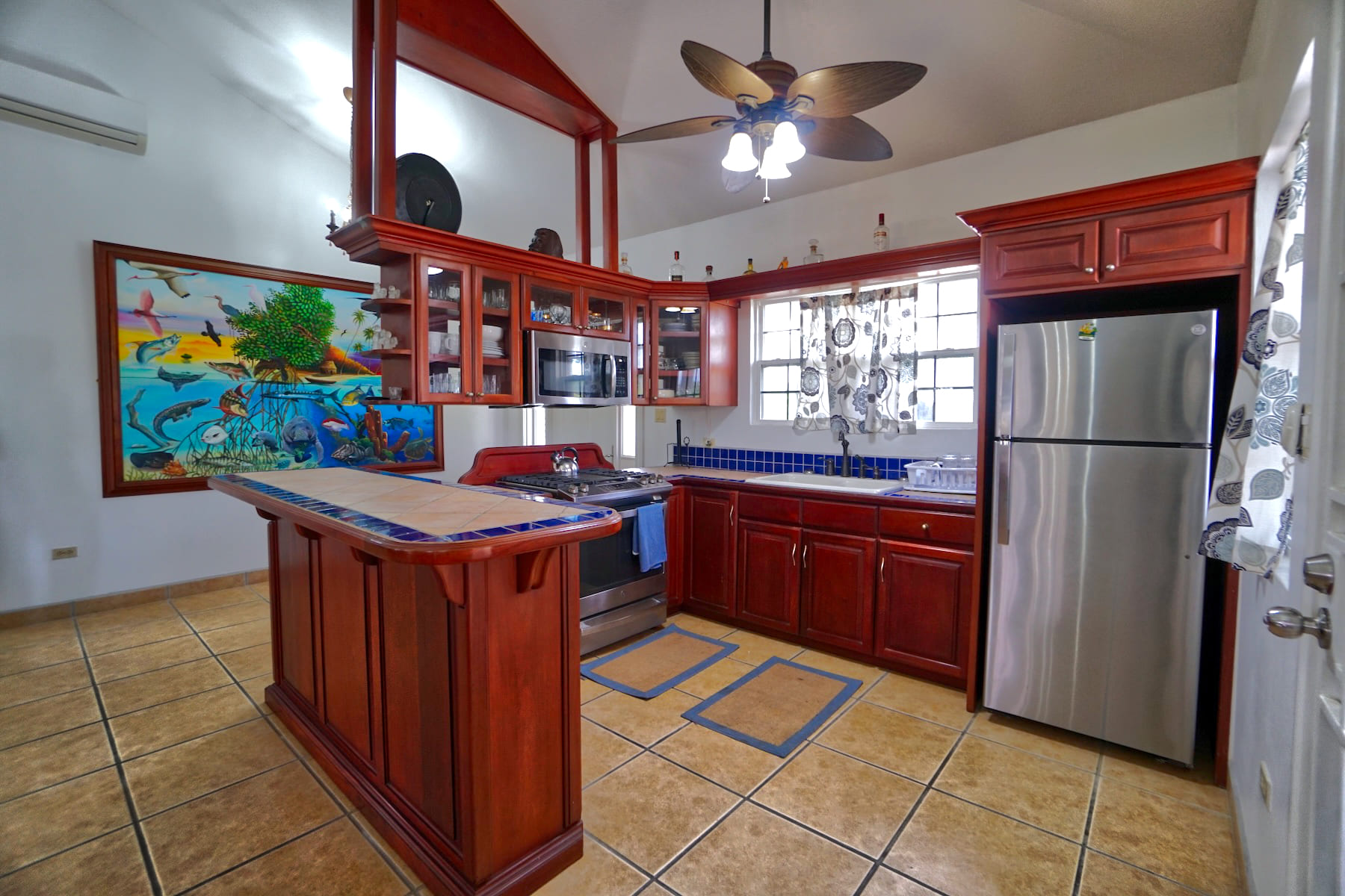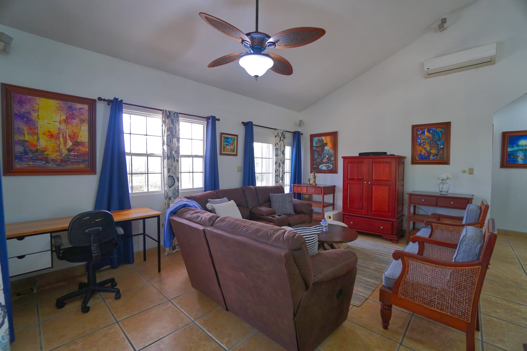 The stunning and inviting open-plan layout creates a well-designed lateral living space (1,395 sq. ft.), maximizing natural light and an airy atmosphere. The entire home has 4 split air-conditioned units, porcelain tiles throughout and adorned with ceiling fans and lights.